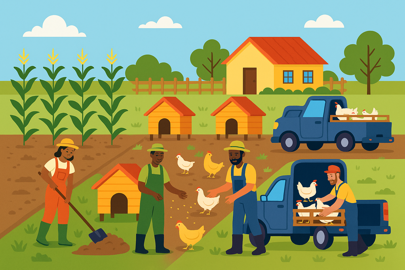 A broiler chicken farm is often the most profitable use of small or medium parcels of land, especially in rural El Salvador, because it generates a high income relative to the space, infrastructure, and capital required. Unlike crops or livestock grazing, broiler production can be done intensively in a compact area — even a quarter-acre can house thousands of birds in rotation — allowing you to maximize earnings per square meter. With a controlled environment and good management, broilers reach market weight in just 6–8 weeks, enabling multiple production cycles per year. This fast turnover means you can realize cash flow every two months, compared to seasonal or annual harvests with crops.